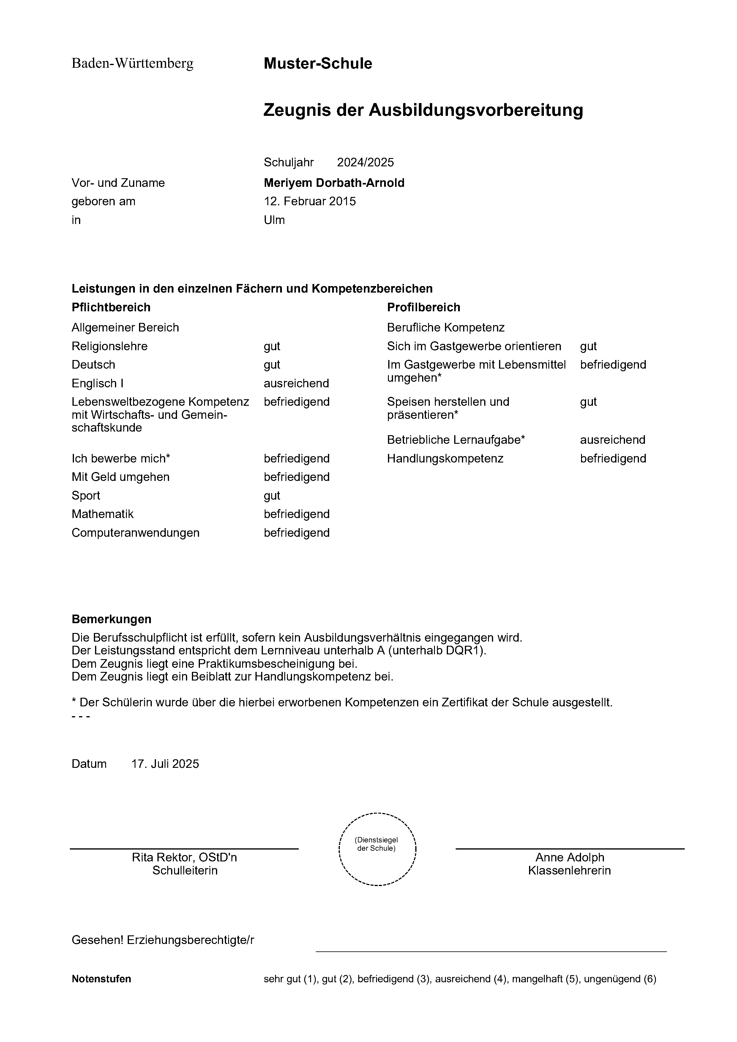 >In AV und AV Dual gibt es für Schüler, die im Niveau 2BF unterrichtet werden, kein Halbjahreszeugnis, sondern eine Halbjahresinformation.