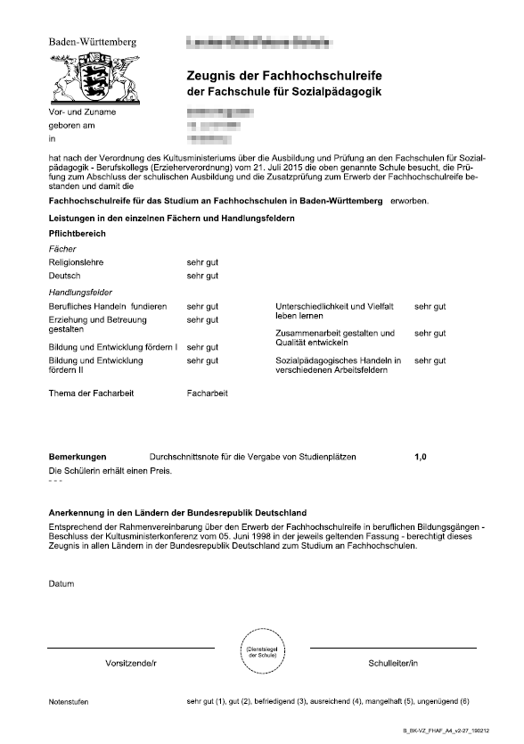 Schülerinnen und Schüler in den Bildungsgängen 2BFQEE und BFSAID verbleiben in ihren jeweiligen Klassen und erhalten automatisch ein Zeugnis für Schulfremde. Ein Zeugnis der Art ASA muss dort eingerichtet sein.