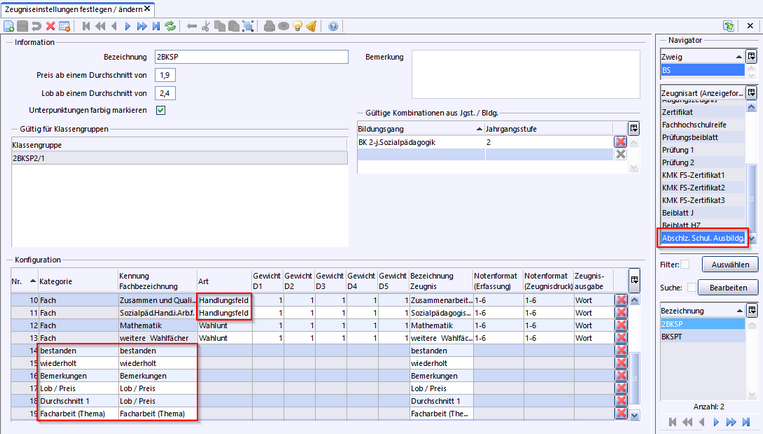 Auf Basis der Stundentafel wird eine Zeugniskonfiguration zur Zeugnisart Abschlusszeugnis erstellt.