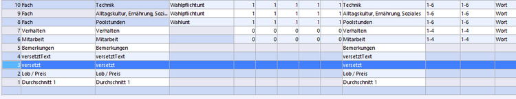 Die möglichen Werte für versetztText hängen von der Jahrgangstufe des Schülers ab: